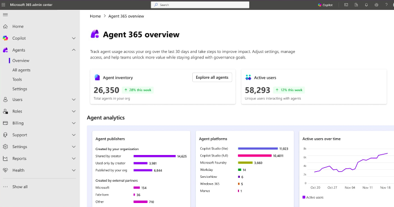 - Agent 365 is now available in the Microsoft 365 admin center (via the Frontier early-access program) to help organizations deploy, monitor, govern, and secure AI agents at scale.