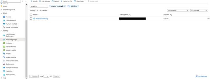 Terraform will now be used to build and administer Azure infrastructure. In this example, a Resource Group—a logical container for Azure assets—is created.